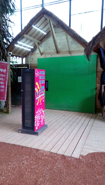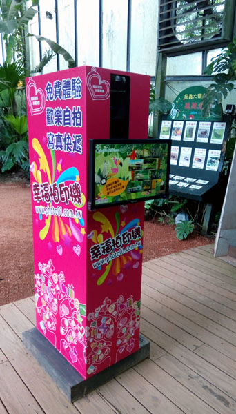 我們在新竹北埔綠世界生態農場現場設置了「自動拍照+自動合成+寫真快遞」,完全無人自動化操縱,拍完照還可以把相片寄給自己,喜歡的話,現場還可以立即