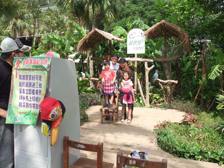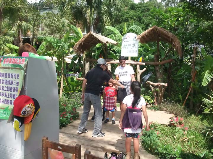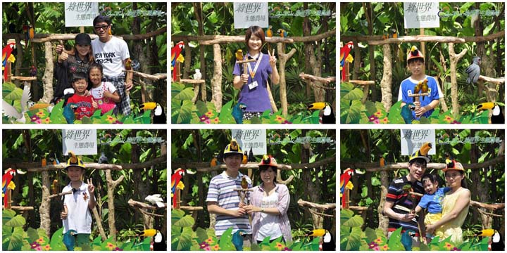 以往拍照的主題都是人物,這次的挑戰是要跟小鸚鵡合照;我們在綠世界設櫃-拍攝紀念照服務,現場提供